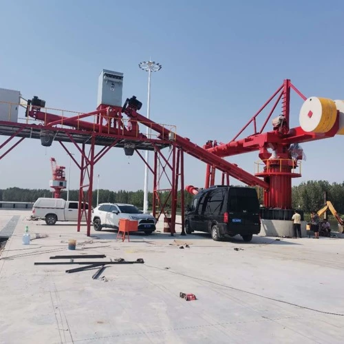 旋转式卸船机具有结构紧凑,横截面积小,重量轻,密封性能好,输送效率高,工艺布置灵活,装、拆、移动方便,操作。适用于输送各种粉状、粒状、小块状得散状物料,如粘土粉、煤粉、水泥、砂、谷粒、小块煤、卵石以及铸铁屑等。